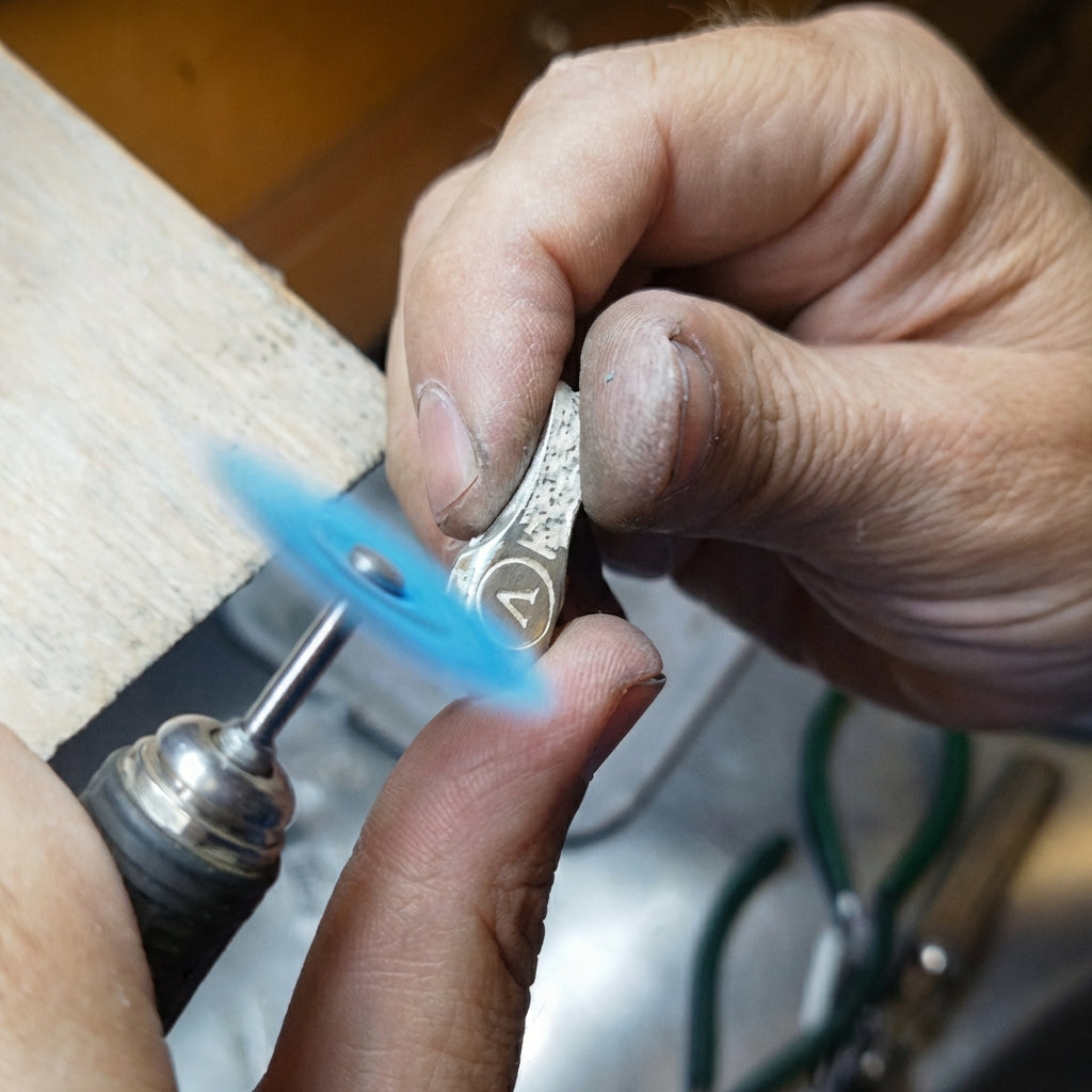 Cada pieza nace en la quietud y la intuición. Trabajamos con metales nobles, piedras naturales y texturas vivas, dejando que la forma emerja de manera orgánica. No forzamos el diseño: escuchamos al material y permitimos que nos guíe.